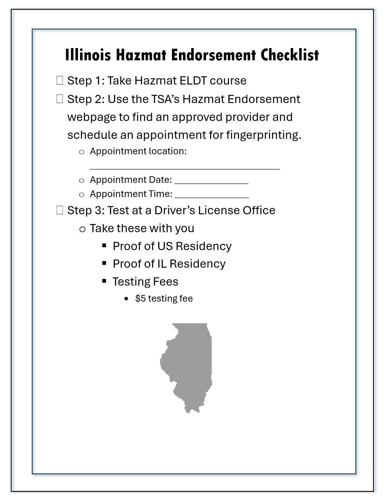 Endorsement. There are four easy steps to get your Hazmat (H) Endorsement in Illinois: