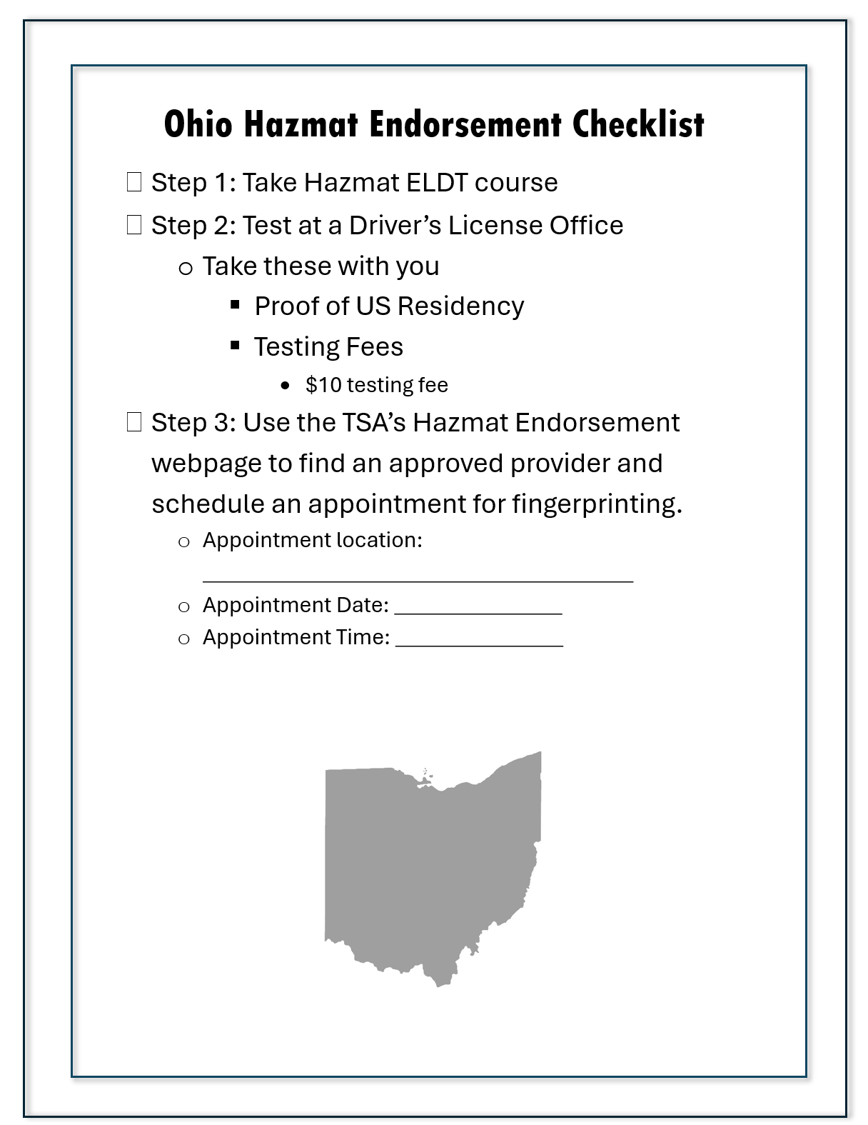 Endorsement. There are four easy steps to get your Hazmat (H) Endorsement in Ohio: